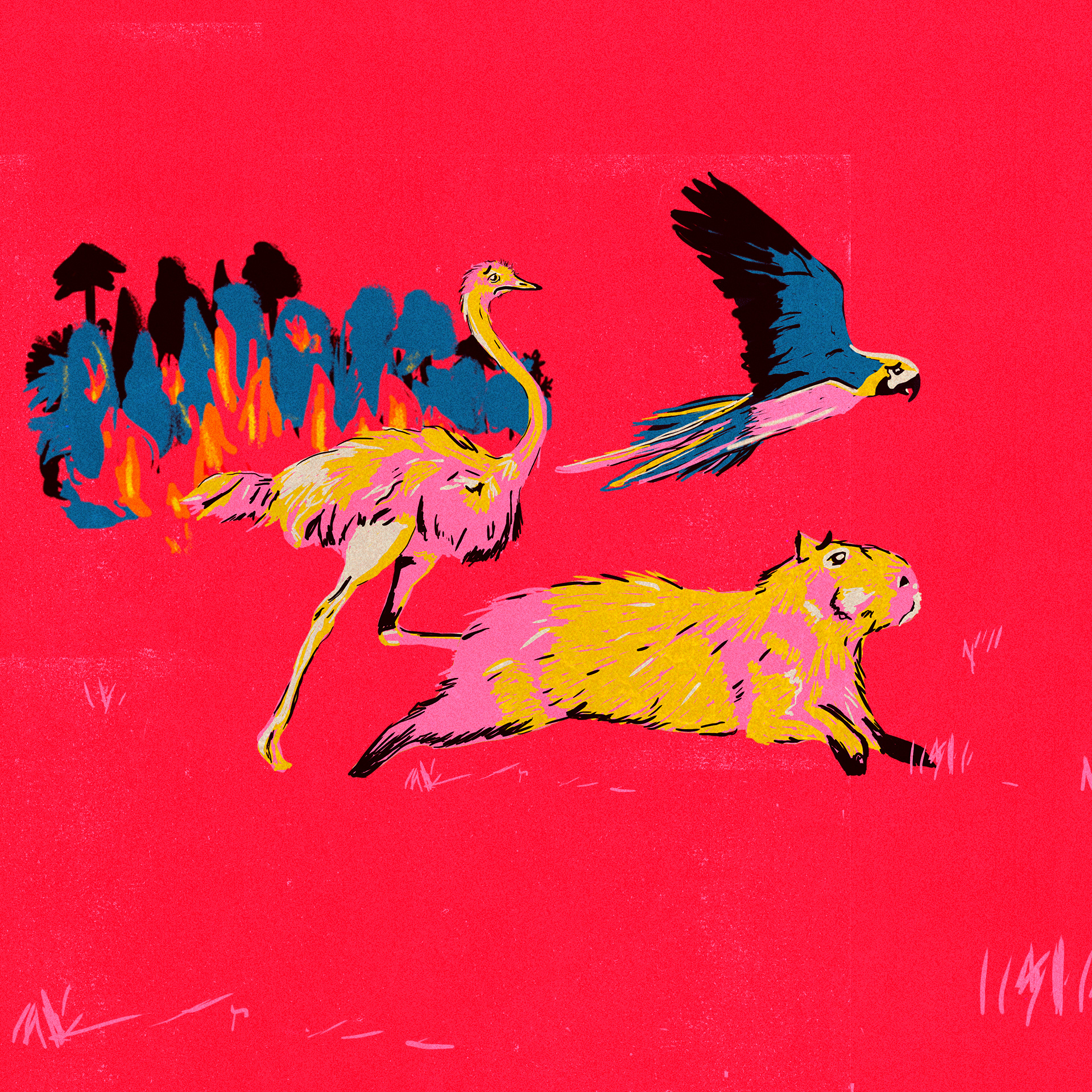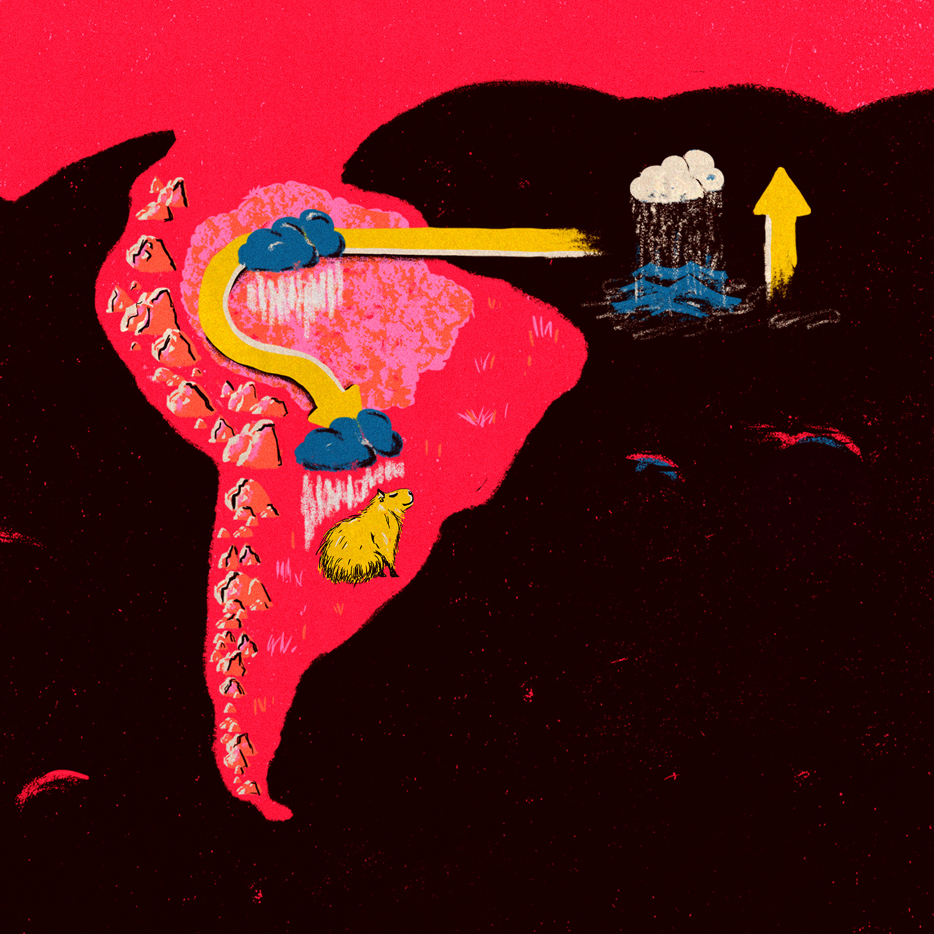 Estas ilustraciones son parte de una publicación con el medio Aos Fatos (Brasil) sobre los ríos voladores y como se ve afectado todo el ecosistema por el cambio climático.