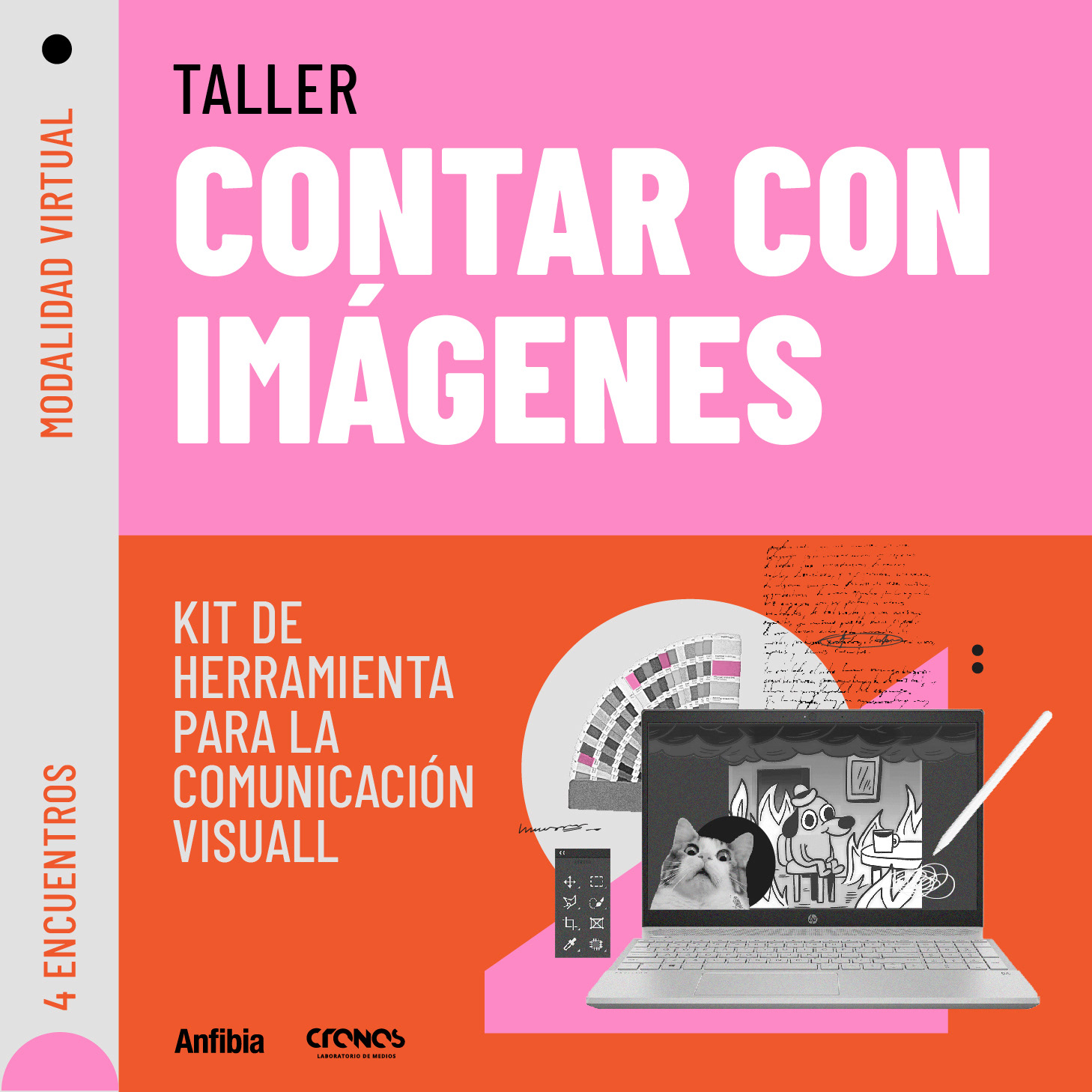 Actualmente doy el taller "Contar con imágenes, kit de herramientas para la comunicación visual" con mi compañero de Anfibia, Sebastián Angresano.
